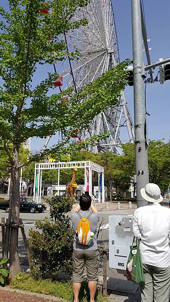 天保山摩天輪前的路口有隻大樂高長頸鹿,給觀光客拍照用,