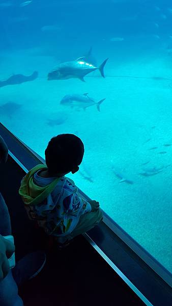 不停的繞圈圈,繞著縱深很大的水族箱,池底還有潛水人員在做清潔。